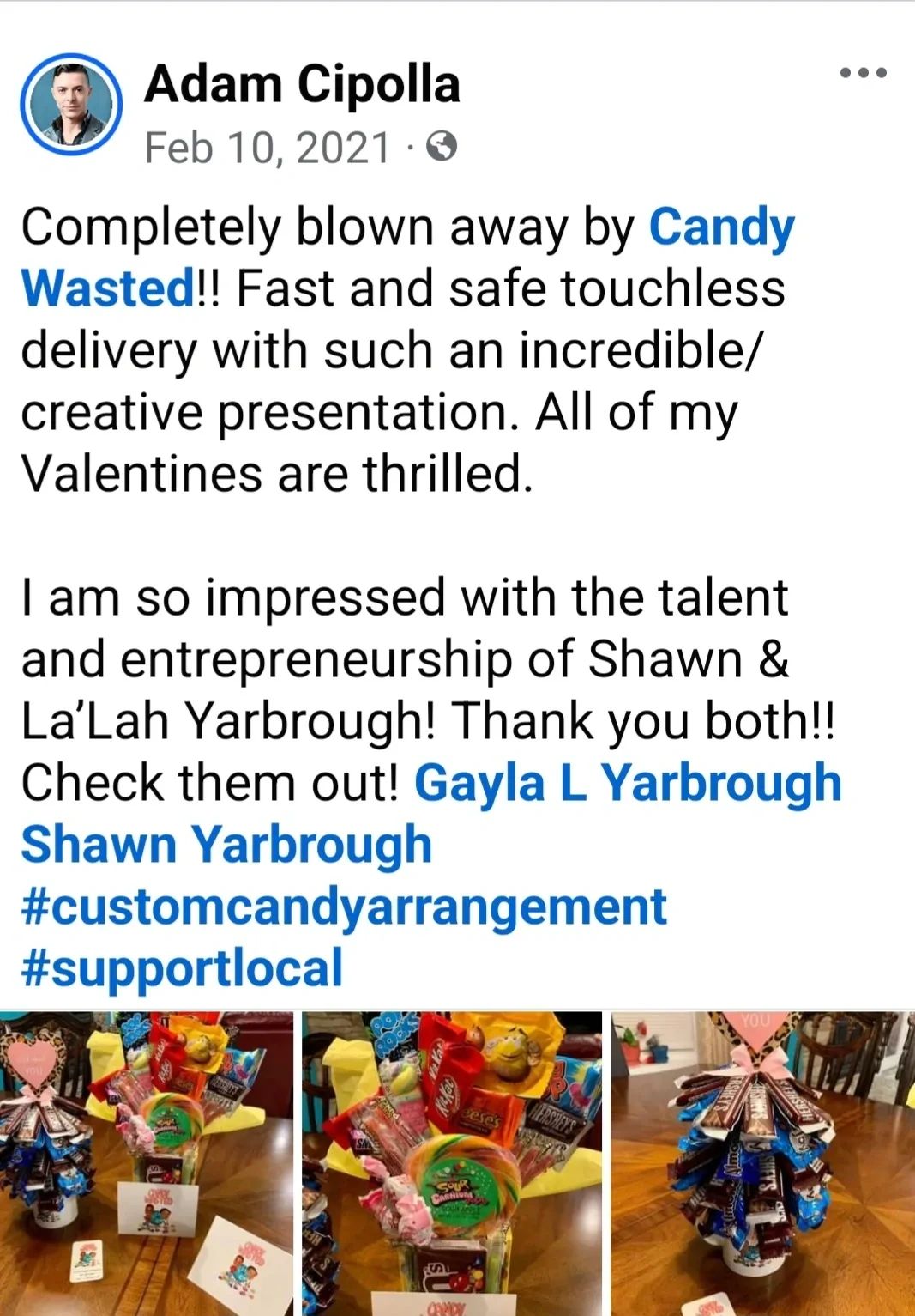 Candy Wasted was founded by siblings Shawn and La'Lah, who shared a mutual passion for sweets and creativity. The idea for their candy arrangement business sparked during a family gathering when they noticed how much joy their homemade candy creations brought to friends and relatives. Inspired by the positive feedback and their entrepreneurial spirit, Shawn and La'Lah decided to turn their hobby into a business.
